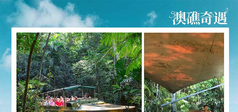 【水陆两用车 Army Duck】独特体验搭乘第二次世界大战时期,美国陆军使用的水陆两用车,展开水鸭子刺激丰富的雨林生态之旅,您在行程当中可看到澳洲特有的热带雨林植物和独特野生动物生态,从雨林底层向上眺望树端的风景。