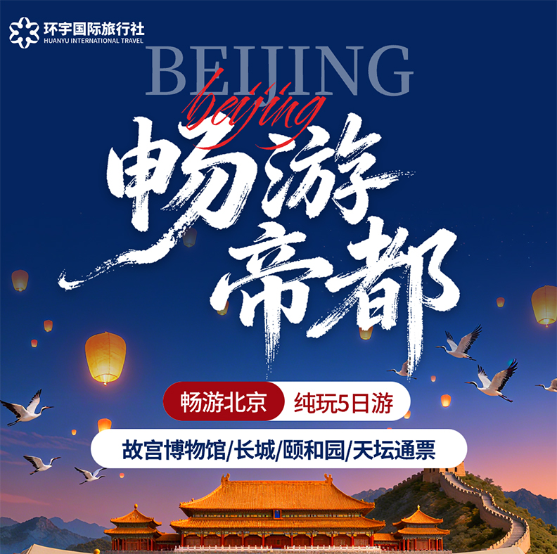 【天安门】 坐落在中华人民共和国首都北京的市中心,故宫的南侧,与天安门广场隔长安街相望,是明、清两代皇城的大门。风景名胜天安门高34.7米。由城台和城楼组成,汉白玉石的须弥座,城楼上60根朱红色通天圆柱,地面金砖铺成,一平如砥;高大而色彩浓郁的墙台,上有两层重檐楼,有黄色琉璃瓦,房分东西九间,南北五间,象征皇权的“九五之尊”。近观【人民英雄纪念碑】,追忆光辉岁月,纪念中国近代史上的革命烈士。外观党和国家及各人民团体举行政治活动的重要场所【人民大会堂】。参观世界上单体建筑面积最大、中华文物收藏量最丰富的博物馆之一【中国国家博物馆】(外观)。