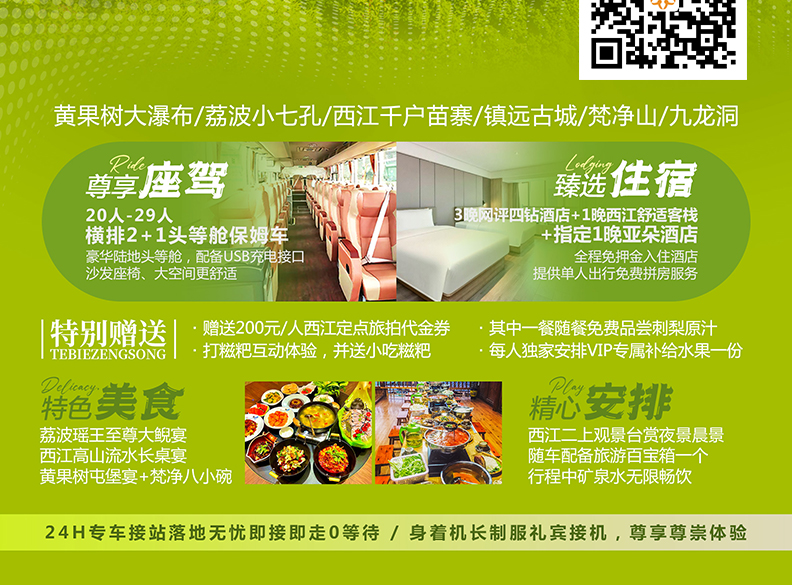 2、用餐:行程中团队标准用餐,含5早4正餐,正餐标准50元/人/餐。(当地特色美食,地道黔味体验;行程中备注不含用餐敬请自理,如因自身原因放弃用餐,无餐费退还)