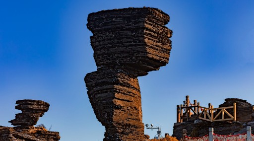 早餐后乘车前往【梵净山景区】(景区观光车48元/人,保险10元/人,梵净山东门往返索道140元/人,费用需自理),游览新晋世界自然遗产地,登国家自然保护区,探访联合国“人与生物圈”保护网,穿越原始森林,观梵净山标志性景物——【蘑菇石】,自由拍照留恋。可根据自身情况选择Ⅰ.攀登【红云金顶】,海拔2336米,晨间红云瑞气常饶四周,因此而得名。山峰拔地而起,垂直高差达百米,上半部分一分为二,由天桥链接,两遍各建一庙,一边供奉释迦佛,一边供奉弥勒佛。由此印证现代佛(释迦牟尼)向未来佛(弥勒佛)的交替。Ⅱ.或攀登【老金顶】,海拔2494米,放眼四顾,身边远远近近的石林出露无遗,千奇百怪且各具魅力,而巍峨起伏的群山,茫茫无际的林莽,似乎就微缩成眼前一面波光荡漾的碧海,就连气势雄伟的新金顶,此时也不过是脚下一座石磴而已。梵净山犹如巨大的天然氧吧,在这里呼吸沁人心肺的新鲜空气,远离城市的喧嚣,体验宁静致远的感觉。