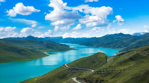 从拉萨出发前往羊卓雍措,沿途可以欣赏到雅鲁藏布江的旖旎风光。江水蜿蜒盘旋,在阳光的照耀下波光粼粼,远处的山峦与江水相互映衬,构成了一幅壮丽的山水画卷。