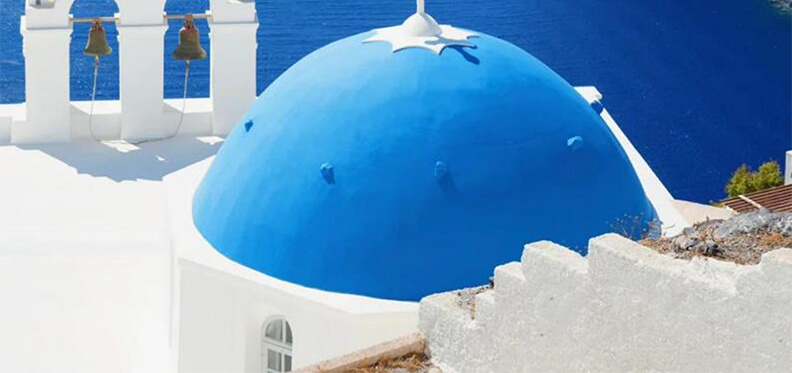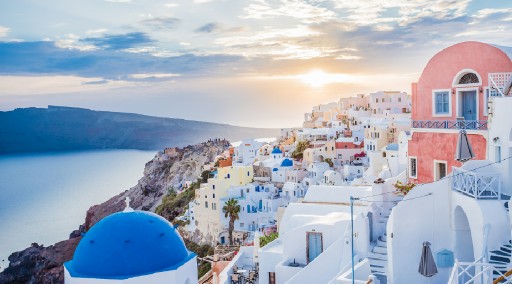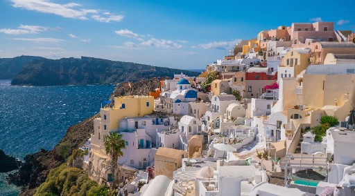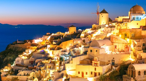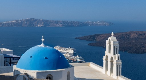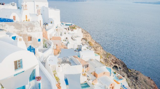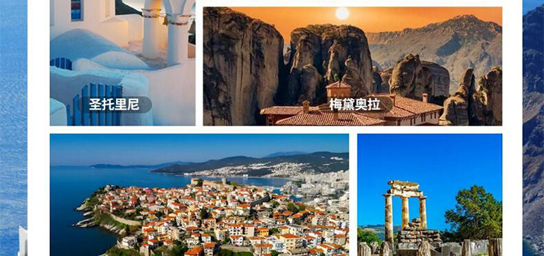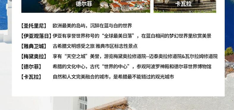 下午 :搭乘飞机前往爱琴海上最具代表性的景观 ,同时也是残留梦幻大陆亚特兰蒂斯传说的【圣托里尼岛】。圣托里尼沿着悬崖建起的白色城市,圣托里尼沿着悬崖建起的白色城市,从海上看彷佛山顶积雪一般美丽。