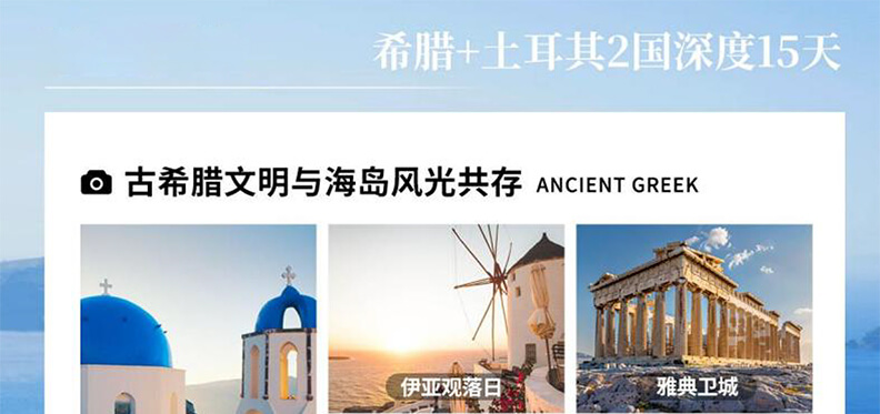 上午 :半天自由活动(自由活动期间 ,不含正餐、交通、导游服务等)。爱琴海上最璀璨的一颗明珠 ,柏拉图笔下的自由之地。这里有世界上最美的日落 ,最壮阔的海景 ,这里蓝白相间的色彩天地 ,是艺术家的聚集地,是摄影家的天堂。在这里 ,你可以作诗人 ,也可以作画家 ,彩绘出你心目中圣托里尼最蓝的天空。
