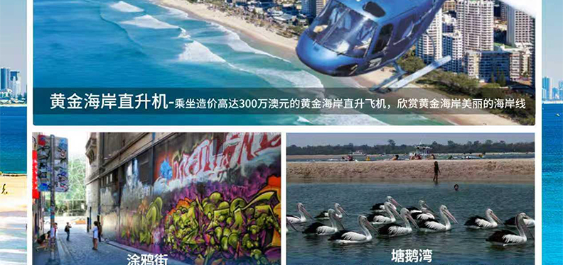 今天将是我们行程的重头戏-黄金海岸直升机,大家不仅可以感受高空翱翔的刺激感受,欣赏美丽的海岸线,还可以和帅哥美女飞行员合影哦!