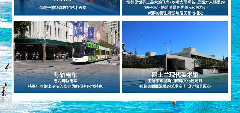 游览墨尔本老城区有个非常好的方式就是乘坐它们的环形老式有轨电车,这条有轨电车已经有近百年的历史,车型内的陈设都是以前的样子,很有时代特色,叮叮当当行驶在墨尔本市区,十分的有年代感,老式有轨电车将墨尔本染上浓浓的欧洲风韵,电车慢悠悠地行驶在城市里,仿佛是与快节奏的城市生活之间竖起的一扇玻璃门,将大都市的浮躁与匆忙全部隔离在外。