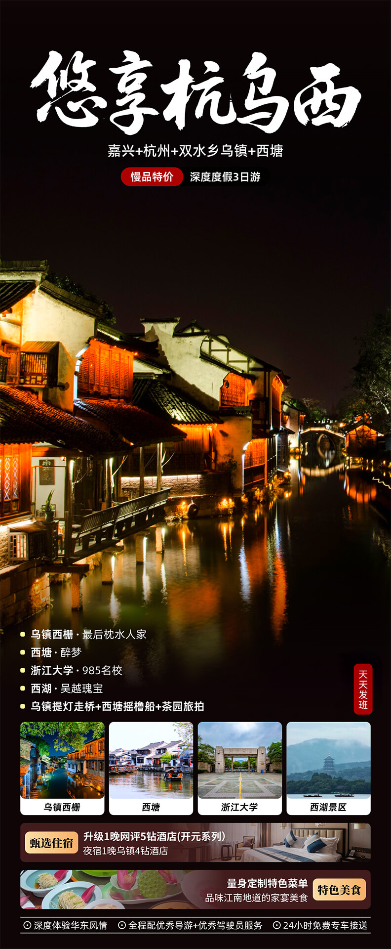 4、如遇法定节假日或乌镇有重大会议或重大活动或乌镇互联网大会等满房的情况、团队用房紧张或景区关闭,为保证成行,调整到桐乡或其他城市同级酒店,无费用退补,敬请谅解!!!